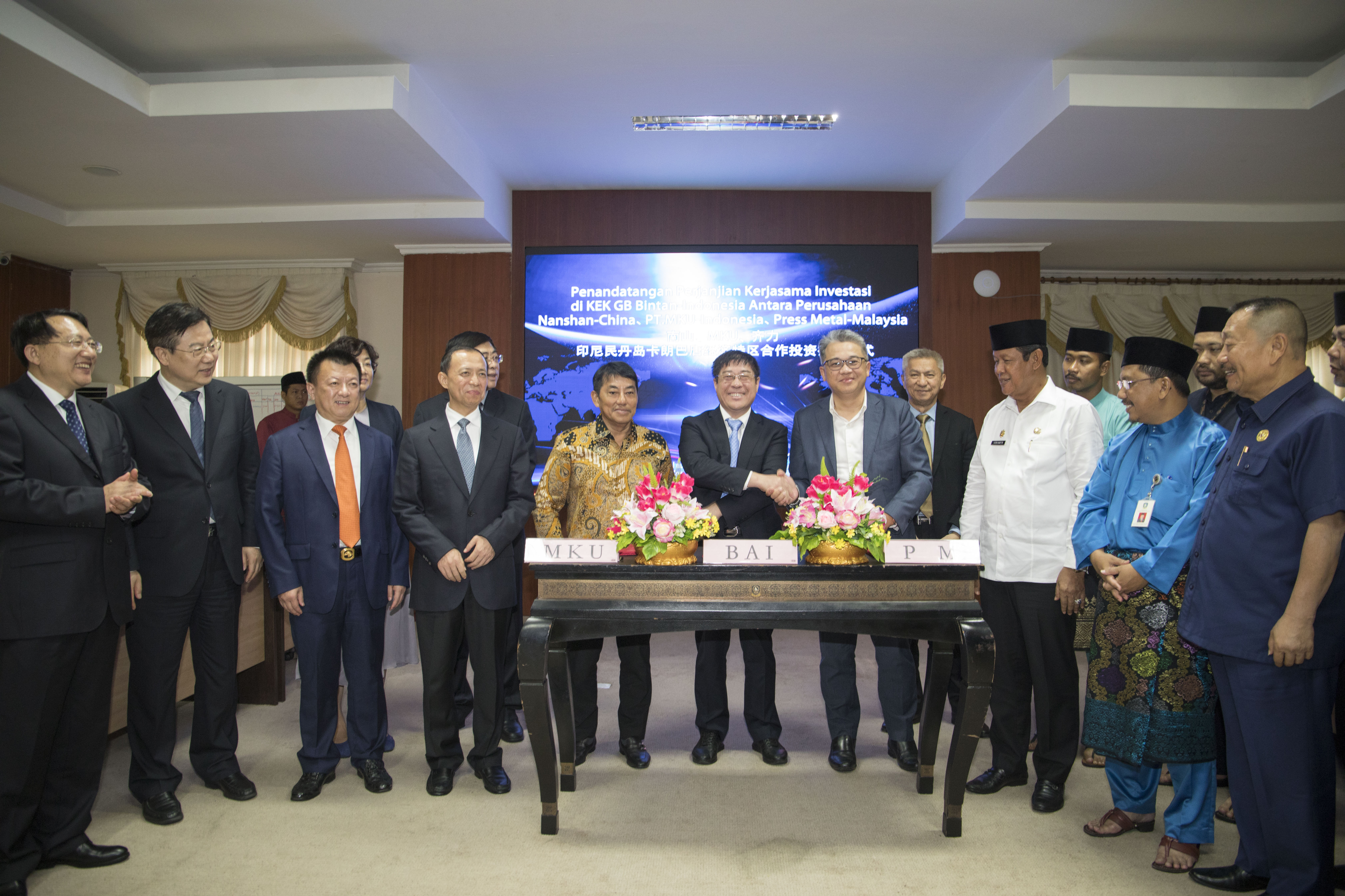 11月15日,新加坡環(huán)球鋁業(yè)、印度尼西亞MKU、馬來西亞齊力鋁業(yè)在印度尼西亞廖內(nèi)群島省政府簽署了關(guān)于印尼賓坦氧化鋁有限公司(BAI,中國南山鋁業(yè)海外子公司)《股份認(rèn)購協(xié)議》及《股東協(xié)議》。齊力鋁業(yè)將對BAI公司進(jìn)行增資,共同開展未來氧化鋁項(xiàng)目建設(shè)。山東省常務(wù)副省長王書堅(jiān)、廖內(nèi)群島省代省長伊思迪安托、山東省國資委主任張斌、煙臺(tái)市常務(wù)副市長王中、南山集團(tuán)董事長宋建波、南山鋁業(yè)董事長程仁策、MKU董事長張國燈、齊力鋁業(yè)董事長管保強(qiáng)等出席簽約儀式。